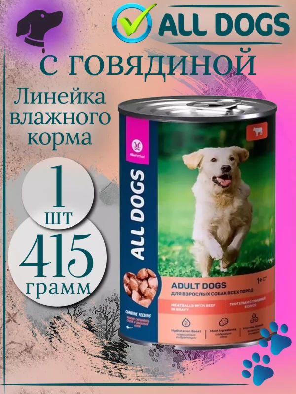 ALL DOGS "Adult" тефтельки с говядиной в соусе 415 г