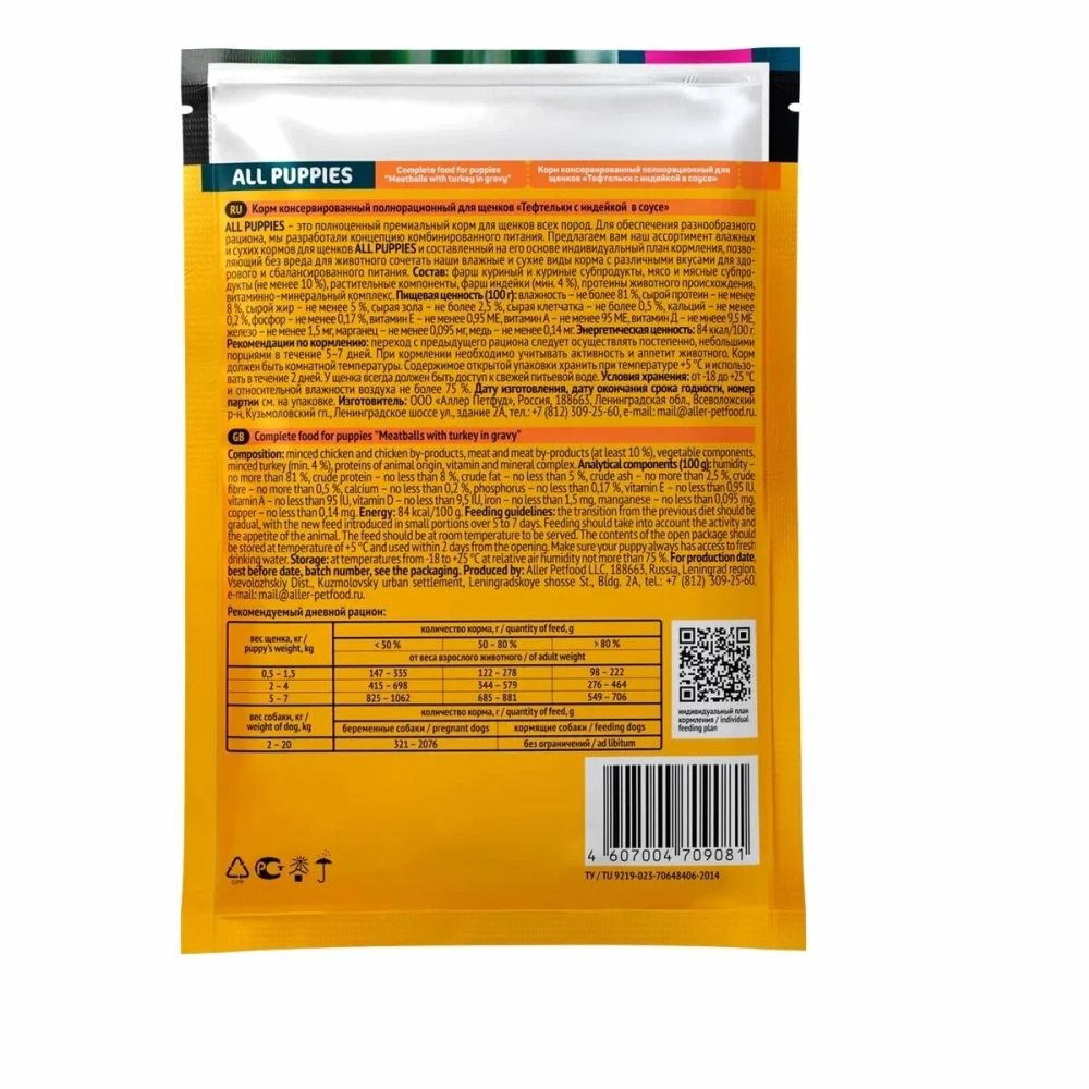 ALL PUPPIES "Puppies" для щенков всех пород, тефтельки с индейкой в соусе 85 г