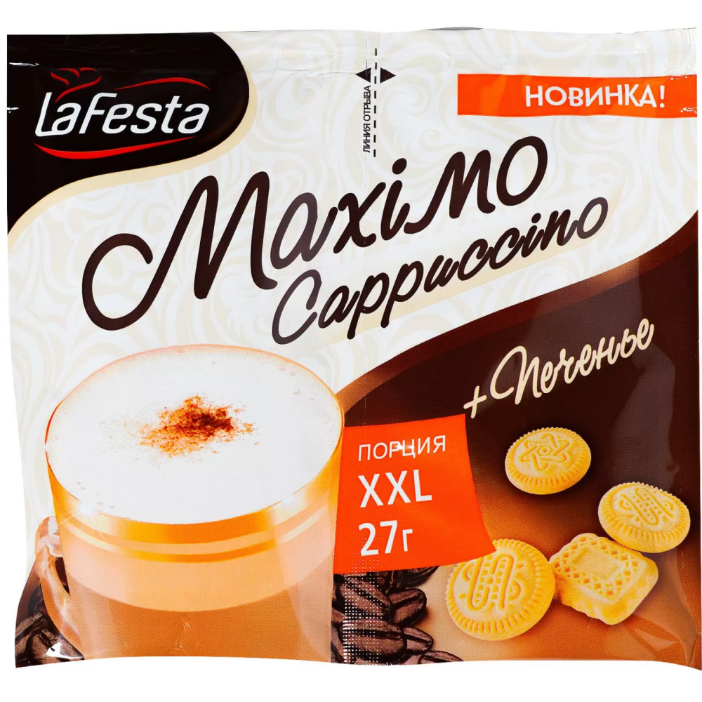 Кофейный напиток растворимый LA FESTA Maximo Cappuccino + печенье 27 г