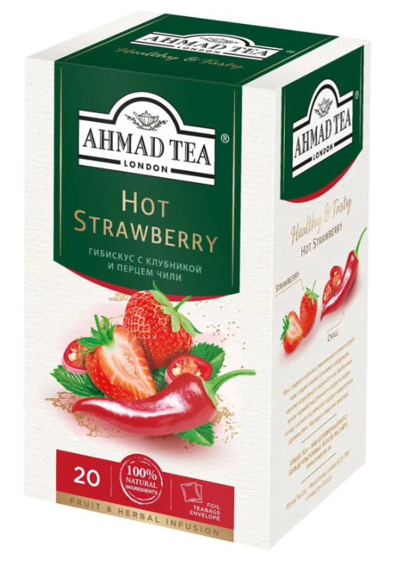 Чай травяной AHMAD TEA "Hot Strawberry" гибискус с клубникой и перцем чили 20х1,8 г