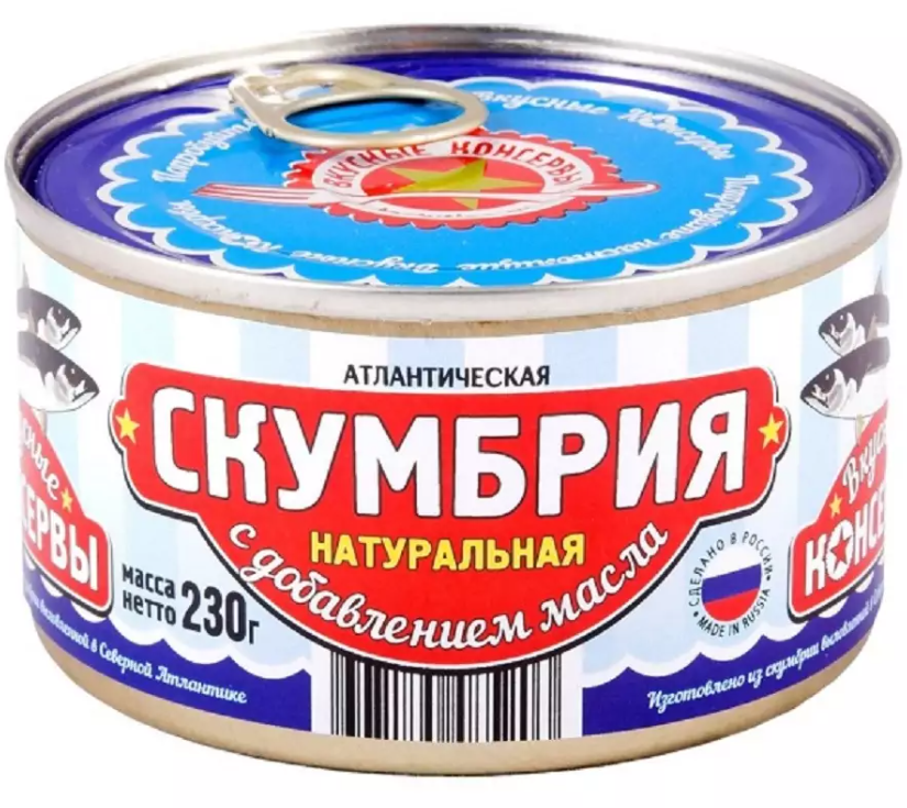 Скумбрия ВКУСНЫЕ КОНСЕРВЫ натуральная с добавлением масла 250 г