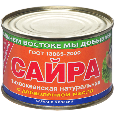 Сайра ПРИМРЫБСНАБ тихоокеанская натуральная с добавлением масла 250 г