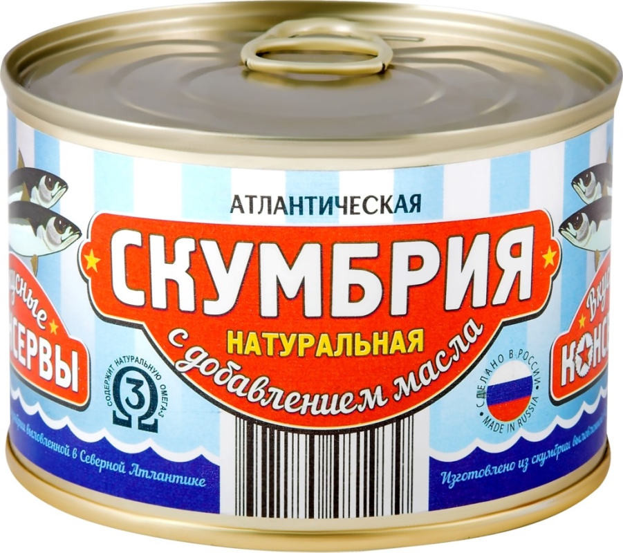 "Вкусные консервы"™ Рыбные консервы Скумбрия атлантическая натуральная с добавлением масле 250г