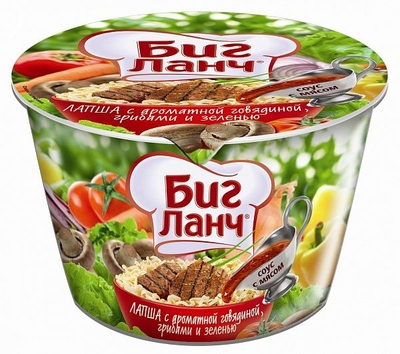 Лапша БИГ ЛАНЧ с ароматной говядиной, грибами и зеленью 90 г