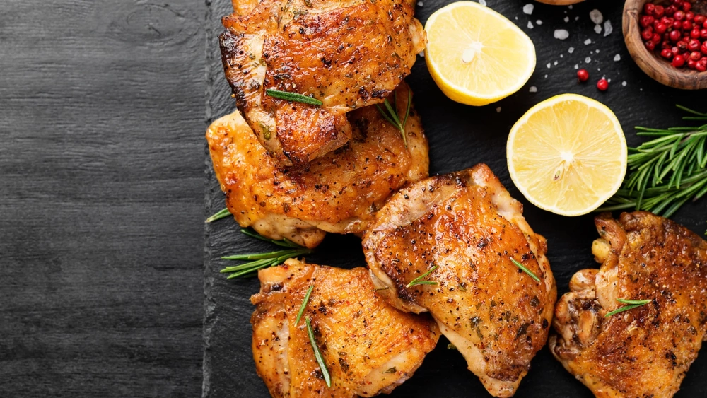 Свежие куриные бедра замаринованы в натуральных специях и обжарены до золотистой корочки, мясо внутри при этом остается нежным и сочным. Закажите уже сегодня и наслаждайтесь прекрасным сочетанием вкусов и ароматов.