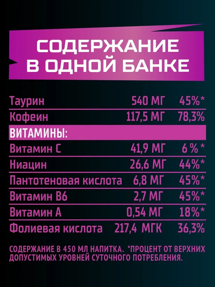 Флэш напиток энергетический ENERGY "Bubble Gum" 0.45 л фиолетовый ж/б