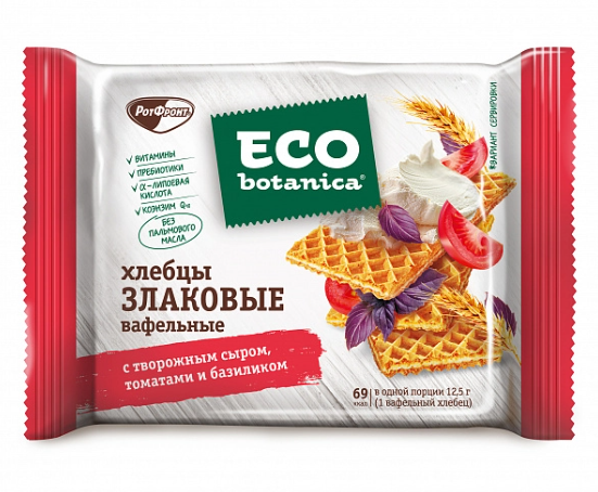 Вафли ECO-BOTANICA "Вафельные хлебцы" злаковые с творожным сыром, томатами и базиликом 75 г