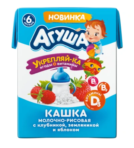 Каша АГУША "Укрепляй-ка" молочно-рисовая с клубникой, земляникой и яблоком 200 мл