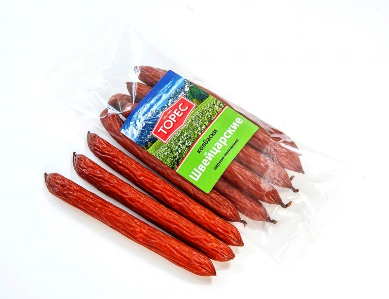 Колбаски ТОРЕС "Швейцарские" варено-копченые 400 кг