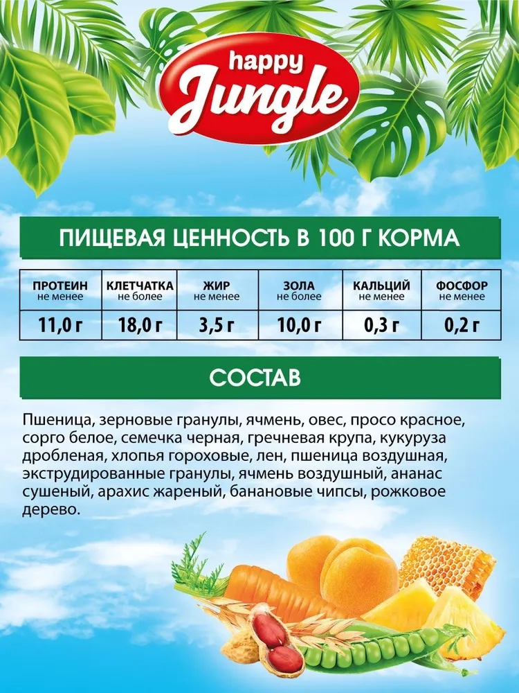 Сбалансированная смесь из зерна и зерновых гранул, фруктов, семечек и арахиса обеспечит животное всеми необходимыми питательными веществами.