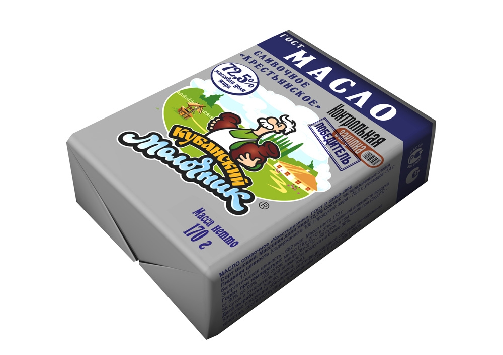 Масло сливочное "Крестьянское" ГОСТ Р 32261-2013 - полезные и питательные молочные продукты. Содержат полиненасыщенные жирные кислоты, фосфолипиды и витамины А, Д, Е. Масло «Кубанский молочник» изготавливается по традиционной технологии исключительно из свежих высококачественных сливок, получаемых из натурального коровьего молока.