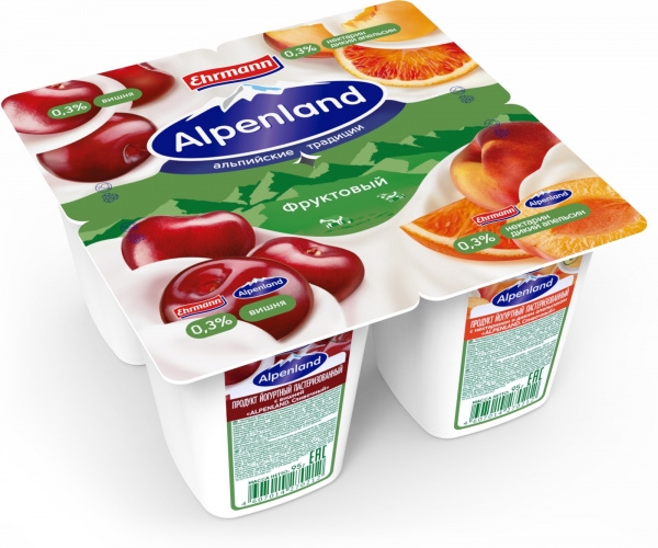 Йогурт EHRMANN "Alpenland" вишня-нектарин-дикий апельсин 95 г 0,3%