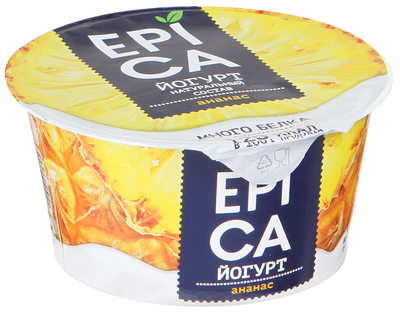 Состав: обезжиренное молоко, наполнитель "Ананас" (сахар, ананас, вода, кукурузный крахмал, лимонный сок, натуральные ароматизаторы, загуститель – камедь рожкового дерева, концентрат из моркови), сливки, йогуртовая закваска, пробиотические культуры.