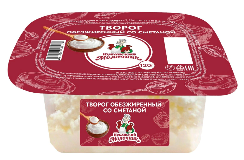 Творог КУБАНСКИЙ МОЛОЧНИК обезжиренный со сметаной 120 г 7,5%