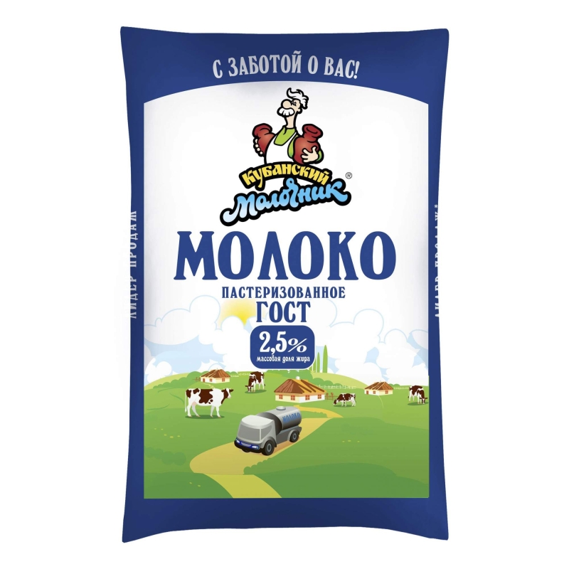 Молоко КУБАНСКИЙ МОЛОЧНИК пастеризованное 2,5% 900 мл пленка