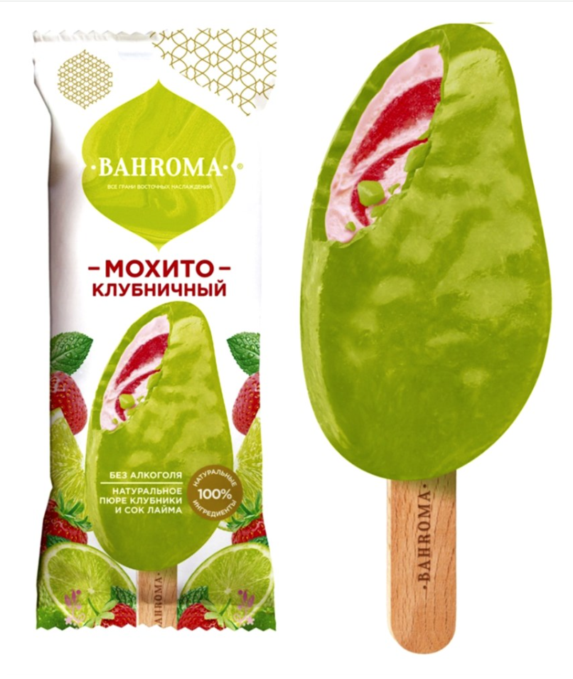 Мороженое BAHROMA "Мохито клубничный" эскимо молочное 75 г 5%