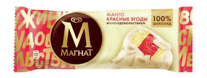 Мороженое МАГНАТ "Сливочное манго и красные ягоды" эскимо 74 г 12%