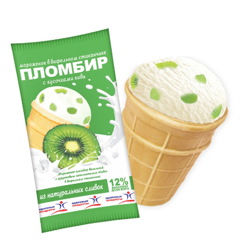 Мороженое ЗДОРОВЫЕ ПРОДУКТЫ "Пломбир" с кусочками киви 80 г 12%