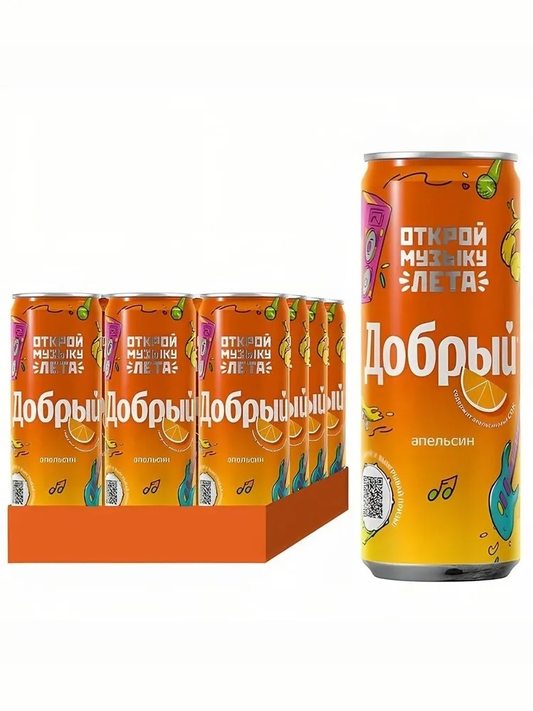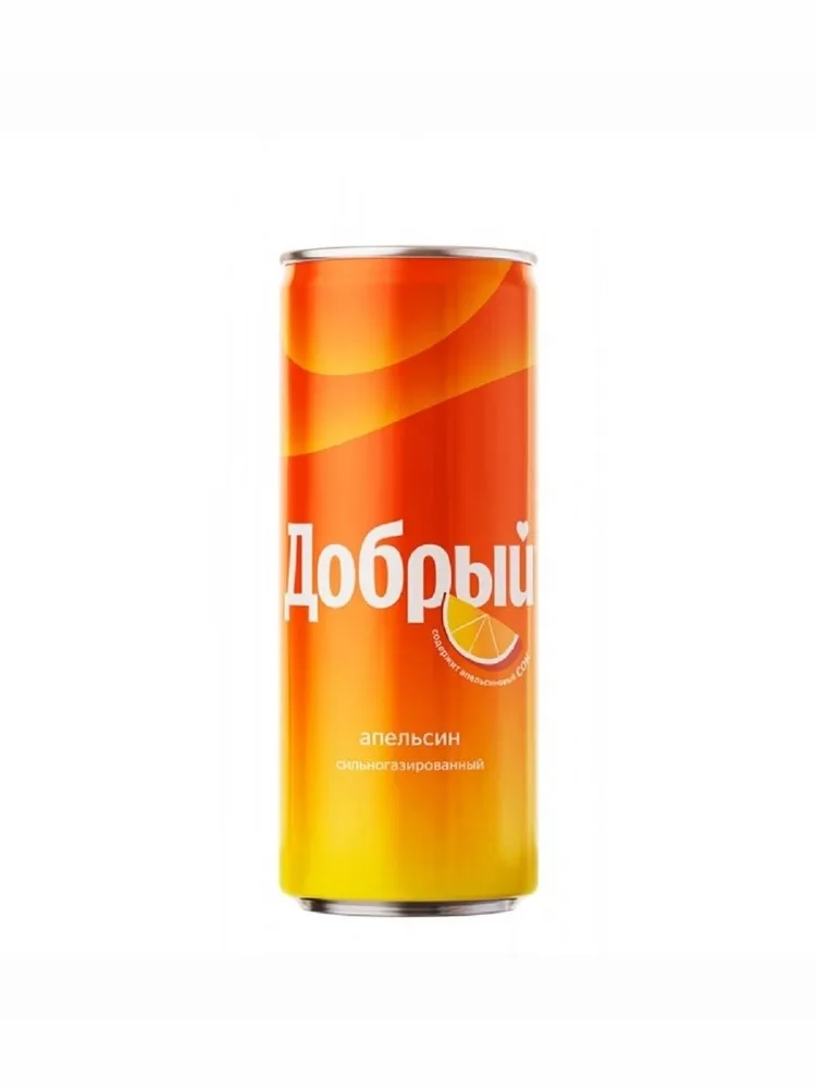 Добрый Апельсин — газированный напиток с сочным вкусом апельсина и множеством пузырьков. Содержит натуральный апельсиновый сок.