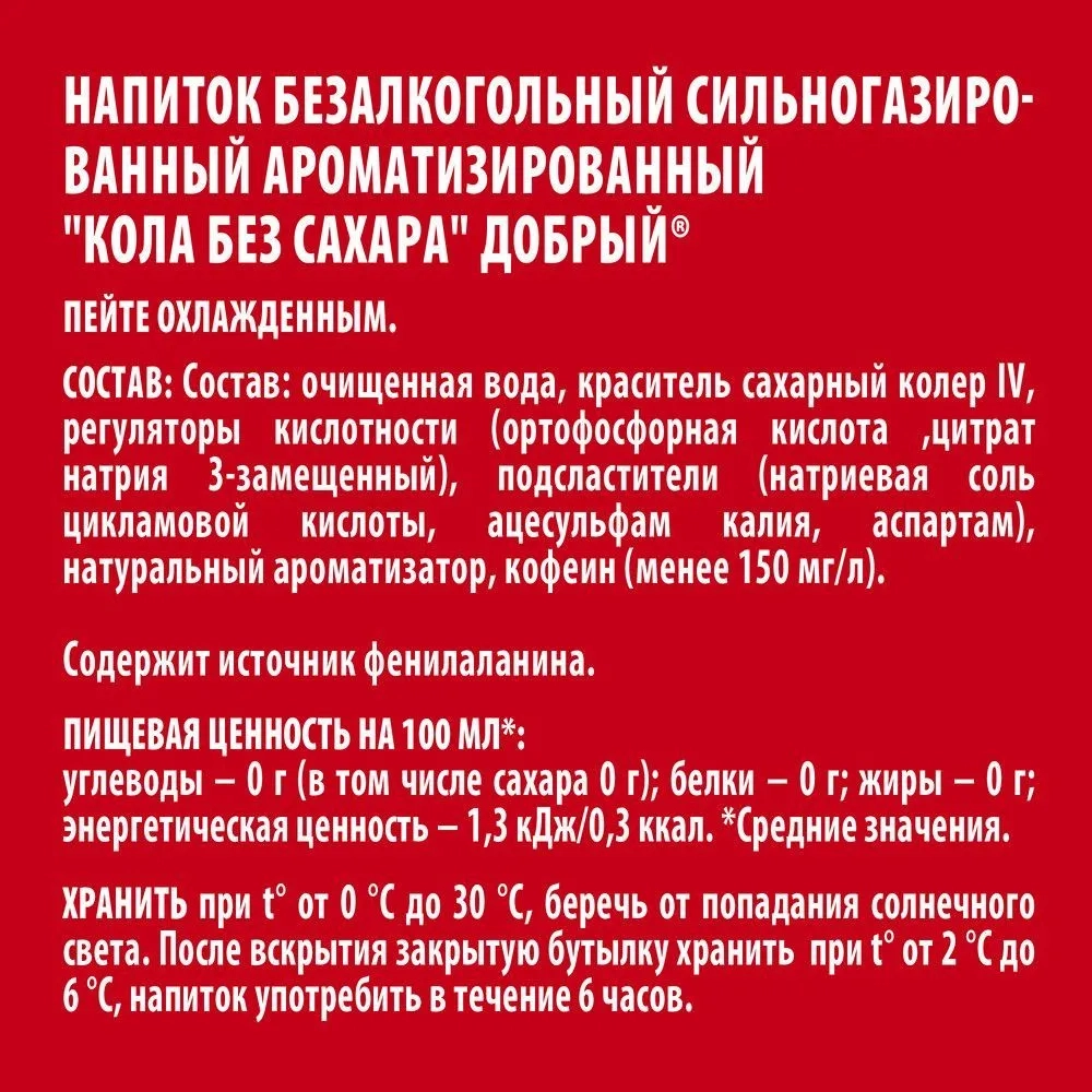Напиток ДОБРЫЙ "Кола без сахара" сильногазированный 0.33 л