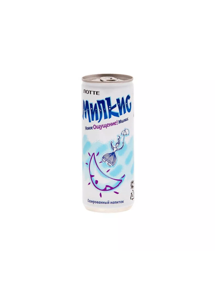 Напиток Милкис Новое ощущение, 250 мл. Милкис - напиток, основанный на сочетании свежего молока с газированным лимонадом. Милкис является популярным продуктом Южной Кореи. Начали выпускать этот напиток с 1989 года, и с тех пор Милкис приобрел популярность во всем мире. Молочный напиток помогает утолить жажду в любое время года. Состав: вода, сахар, фруктоза, сухое соевое молоко, диоксид углерода (E290), фосфористая кислота, лимонная кислота (E330). Витамины A, C, D3. Энергетическая и пищевая ценность на 100 мл: 50 ккал/210 кДж, белки 0 г, жиры 0 г, углеводы 12 г. Срок хранения: 24 месяца.