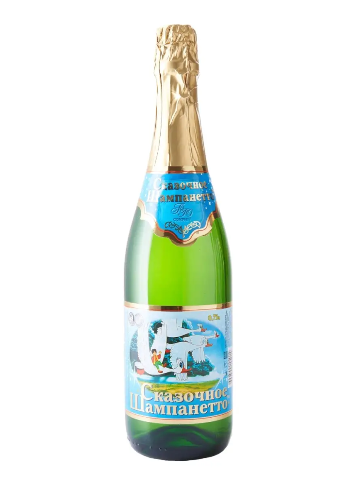 СКАЗОЧНОЕ ШАМПАНЕТТО- произведен по классической технологии производства шампанских и игристых вин, является одним из флагманов России среди напитков этого сегмента рынка, имеет 4 награды, трехкратный победитель конкурсах 100 лучших товаров России. Вода для добычи добывается из артезианской скважины глубиной 405 метров (апшеронский пласт), которая проходит четырехступенчатую очистку и фильтрацию. Напитки без сахара наливаются в стеклянную бутылку 0,75 л зеленого цвета (классическая бутылка для шампанского и игристых вин), бутылка укупоривается пластиковой пробкой (которая, в свою очередь, крепится к музлету и наполняется золотом. Капсула с отрывной лентой сверху. На этикетках изображены сюжеты русских народных сказок, коллажи которых имеют яркую индивидуальность. Срок годности напиток газированный имеет- 2 года (730 дней). Условия хранения от 0 до 20 градусов С. Газированный напитки, лимонад без сахара, фруктоза натуральная.