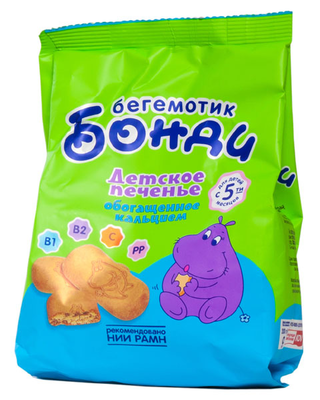 Печенье "Бегемотик Бонди" детское обогащенное кальцием 180 г