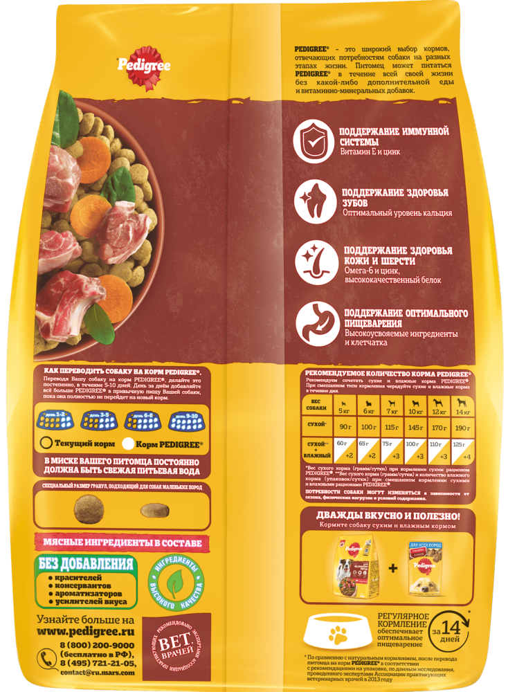 Рацион PEDIGREE® — это полезная и вкусная еда, приготовленная с учетом физиологических потребностей маленьких собак, еда, которой нужно кормить регулярно.