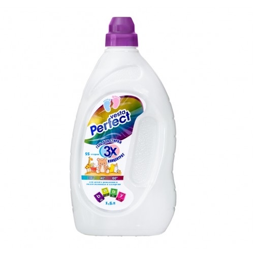 Новое концентрированное средство для автоматической и ручной стирки белья Vesta perfect Jeans с пониженным пенообразованием, разработано с учетом новейших технологий, и содержит в своем составе комплекс ферментов и биодобавок, которые эффективно удаляют с