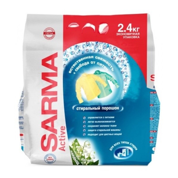 Порошок стиральный SARMA Active "Ландыш" для всех типов стирки 2.4 кг