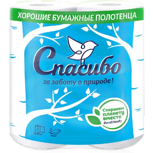 Полотенца бумажные PLUSHE "Спасибо за заботу о природе" двухслойные 2 рулона