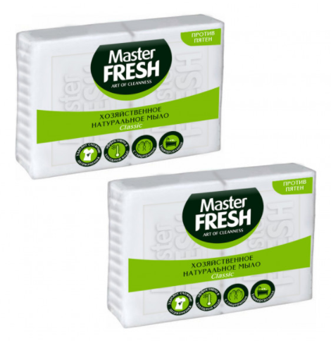 Мыло хозяйственное MASTER FRESH натуральное, белое, против пятен 2х125г