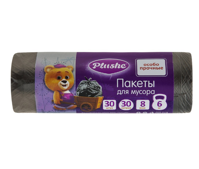 Пакеты для мусора PLUSHE особо прочные 8 мкм 30 л. 30 шт