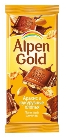 Шоколад AlPEN GOLD молочный с арахисом и кукурузными хлопьями 85 г