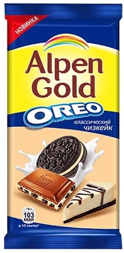 Шоколад ALPEN GOLD "Oreo" молочный со вкусом чизкейка 90 г