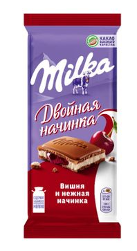 Шоколад MILKA "Двойная начинка" молочный вишня и нежная начинка 80 г