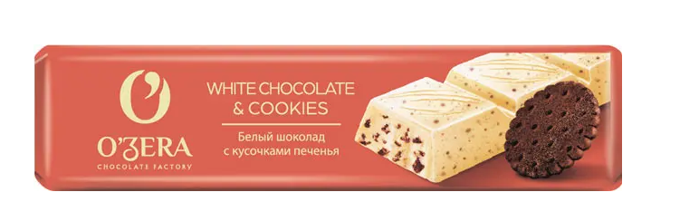 Шоколад O'ZERA "White & Cookies" белый с кусочками печенья 45 г