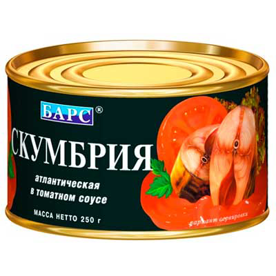 Скумбрия БАРС атлантическая в томатном соусе 250 г