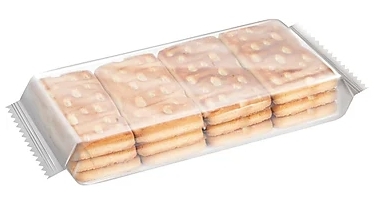 Состав: мука пшеничная в/с, масла растительные, сахар, сыворотка молочная сухая деминерализованная, лактоза, глюкозно-фруктозный сироп, какао-порошок, продукты яичные, соль, разрыхлители: гидрокарбонат аммония, гидрокарбонат натрия; эмульгаторы: соевый лецитин, моно- и диглицериды жирных кислот; сливки сухие, ароматизаторы, антиокислители: аскорбиновая кислота, концентрат смеси токоферолов, альфа- Токоферол; регулятор кислотности: лимонная кислота; краситель: каротины.