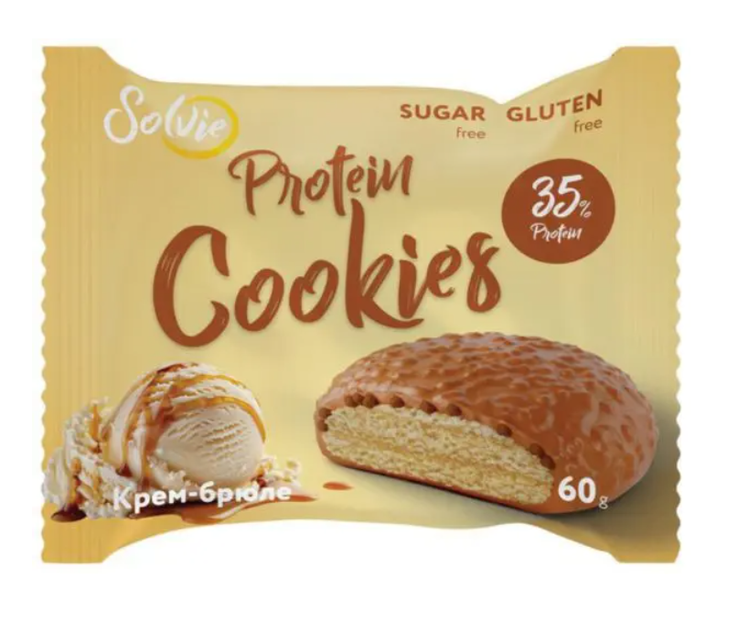 Печенье SOLVIE "Protein Cookies. Крем-брюле" глазированное молочной карамелью без сахара 60 г