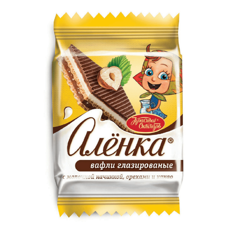 Вафли КРАСНЫЙ ОКТЯБРЬ "Аленка" с молочной начинкой орехами и какао 20 г