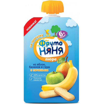 Пюре фруктовое ФРУТО НЯНЯ из яблок, бананов и груш с печеньем с 6 месяцев 90 г