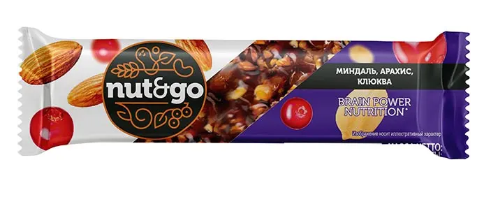 Батончик NUT&GO миндаль, арахис, клюква 50 г