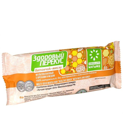 Батончик-мюсли Здоровый перекус с орехами и медом уп. 60 г