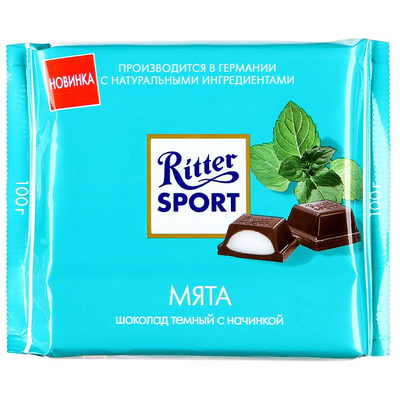 Шоколад RITTER SPORT темный с мятной начинкой 100 г