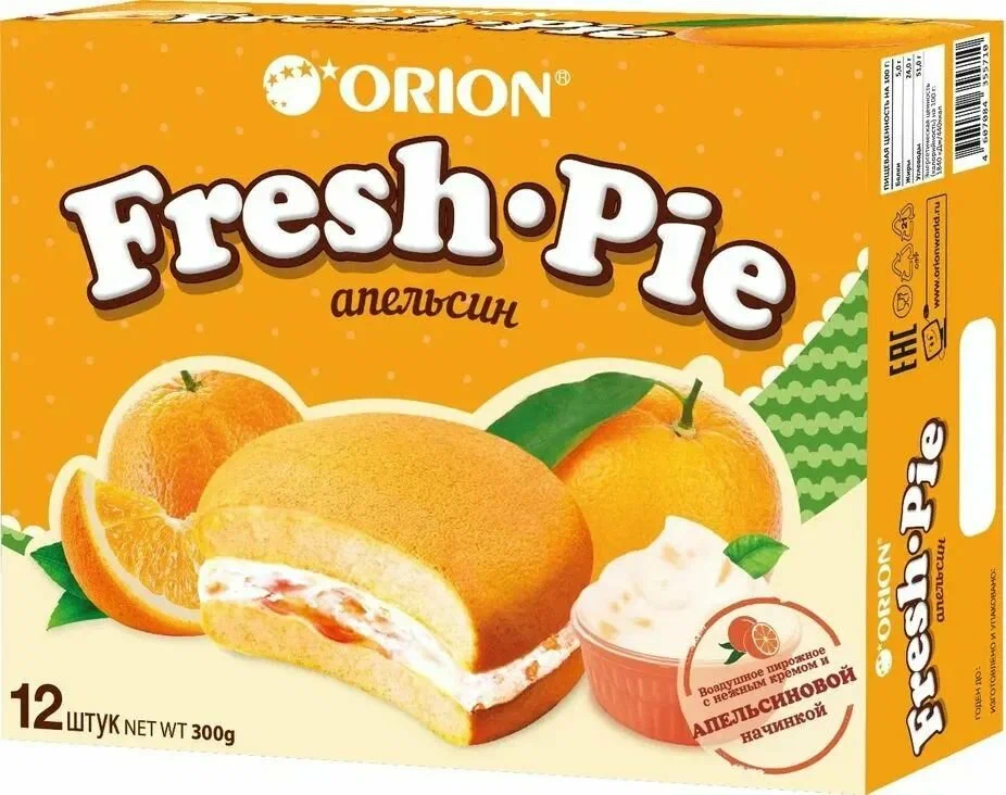 Пирожное ORION "Fresh Pie" бисквитное с апельсиновой начинкой 300 г
