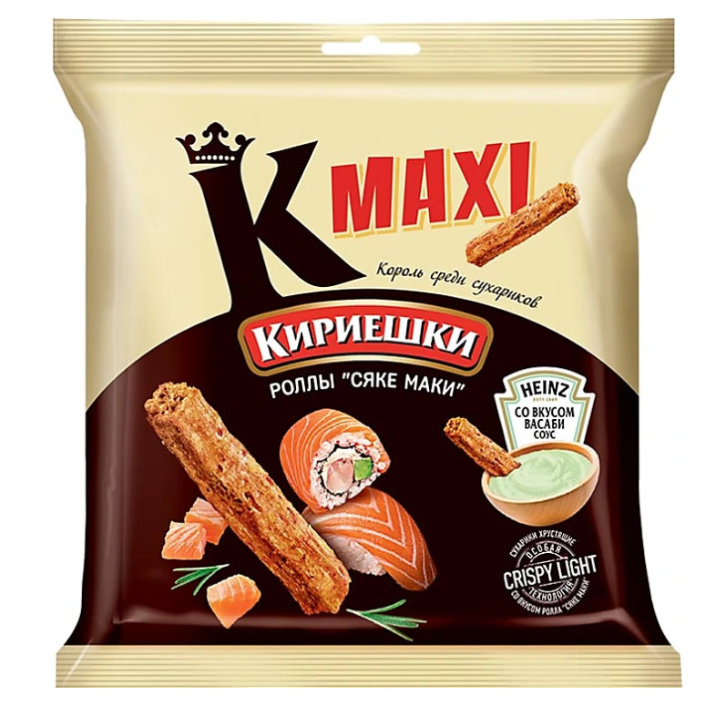 Сухарики КИРИЕШКИ "Maxi. Роллы Сяке Маки" + соус "Heinz" со вкусом васаби 75 г