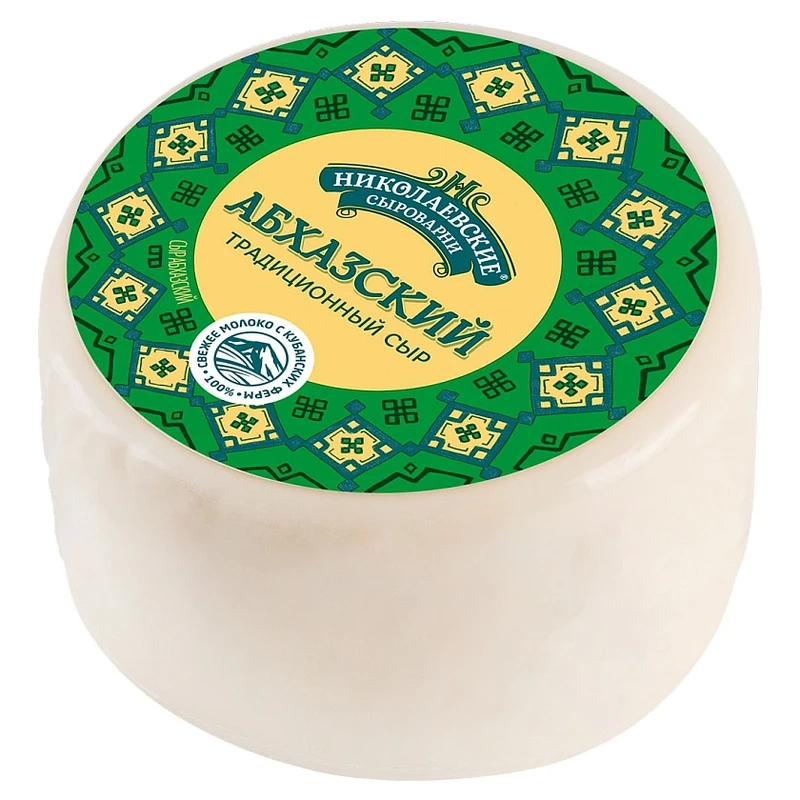 Массовое производство Абхазского сыра началось совсем недавно- в 1980 году. Это малосоленый сыр белого цвета (иногда с легким кремовым оттенком). Вкус кисломолочный, чуть солоноватый, консистенция слоистая, мягкая. В составе сыра Абхазского нет никаких консервантов, кроме самого натурального - соли пищевой поваренной.