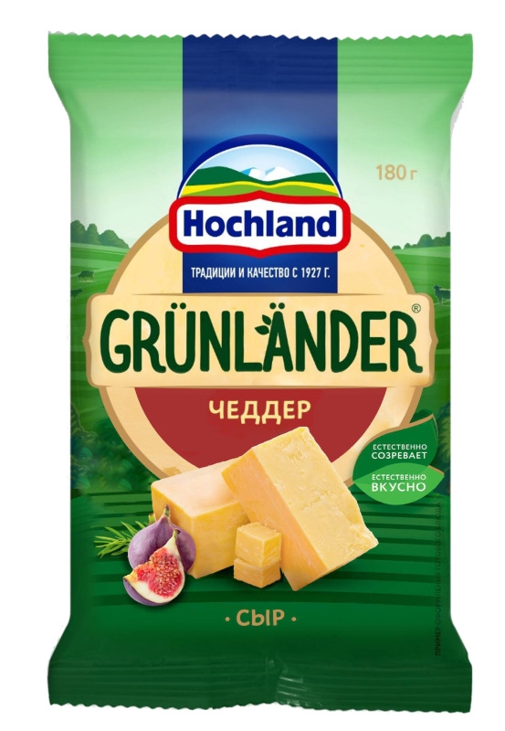 Сыр HOCHLAND "Grunlander. Чеддер" полутвердый 180 г 50%