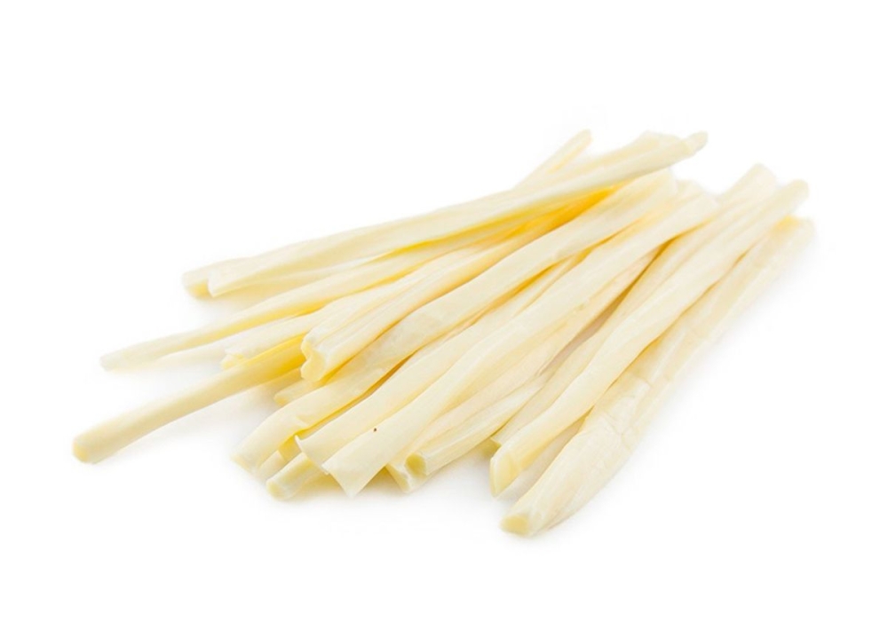 Сыр производится из натурального молока, не содержит консервантов и растительных жиров. Сыр отлично подойдет в качестве закуски к напиткам, дополнения к сырной тарелке или снека для просмотра фильмов. Имеет приятный солоноватый вкус и пластичную форму спагетти с волокнистой текстурой.